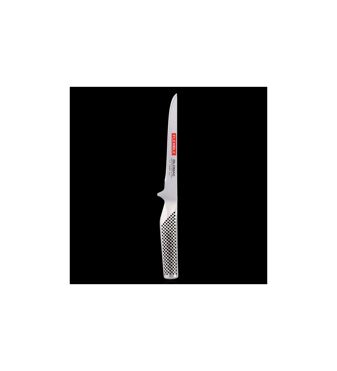 Le couteau à désosser Global G21 à une forme usée et une lame flexible.