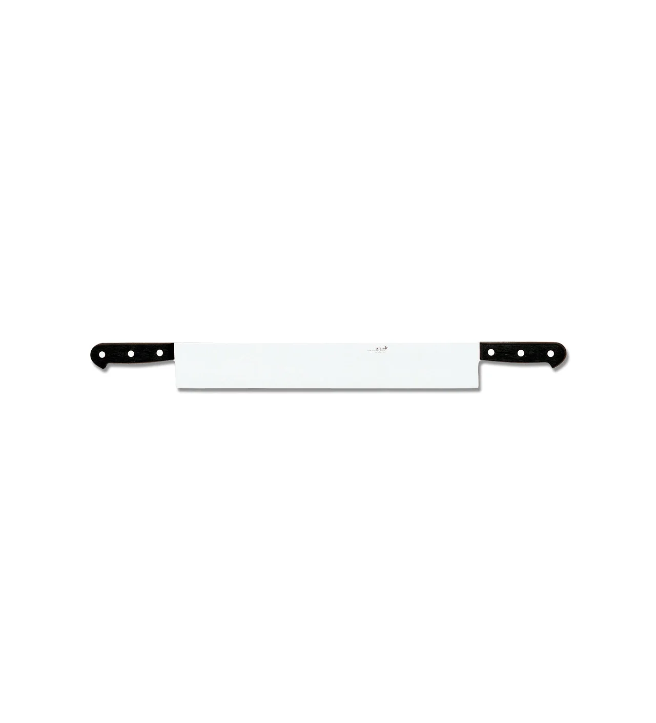 Couteau à Fromage avec 2 poignées pour faciliter la découpe nette des fromages à pâte dure. Lame du couteau à fromage 2 mains Deglon en acier inoxydable et très robuste.