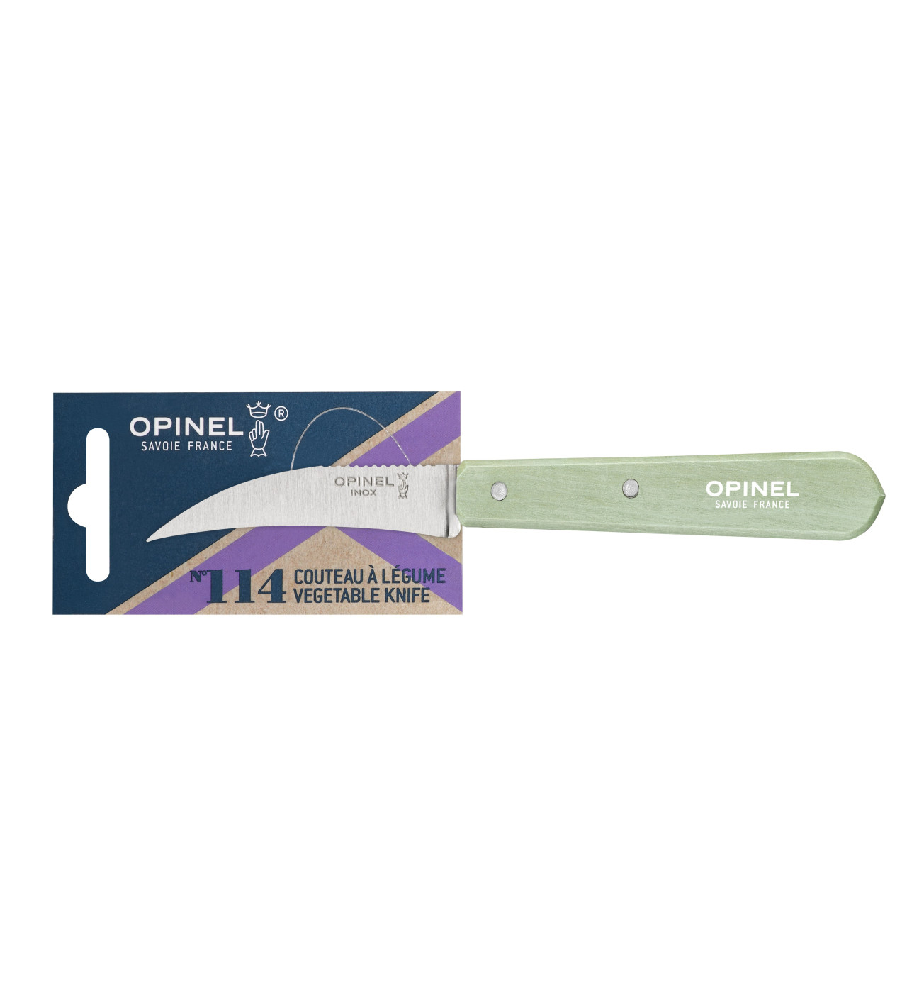 Votre prise sur le couteau à légumes sera assurée par le manche en bois de charme. Chaleureux et confortable, son aspect naturel est renforcé par sa délicate couleur sauge. Dans le potager comme en cuisine, le couteau N°114 Opinel sera un allié sur lequel vous pourrez toujours compter.