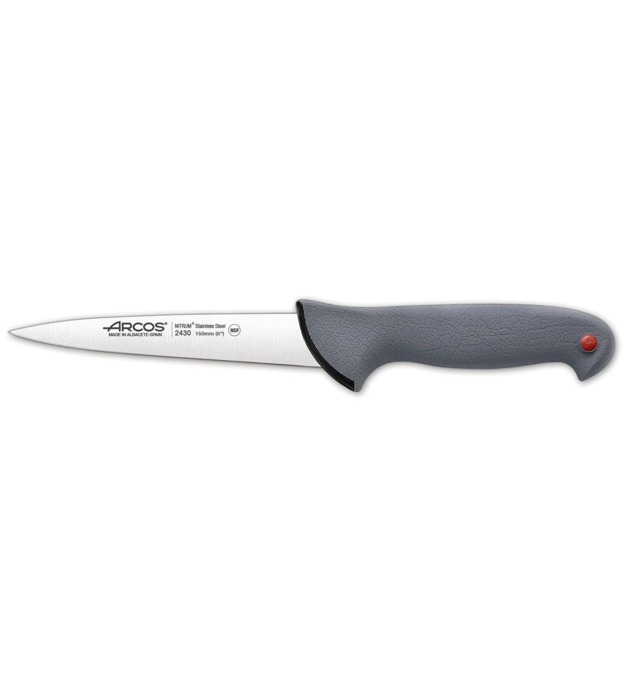 Doté d'une lame de 15 cm de long, le Couteau à Saigner Arcos Colour Prof s'adresse aux professionnels. Sa pastille rouge indique son utilisation exclusive pour la viande, comme le recommandent les normes HACCP.