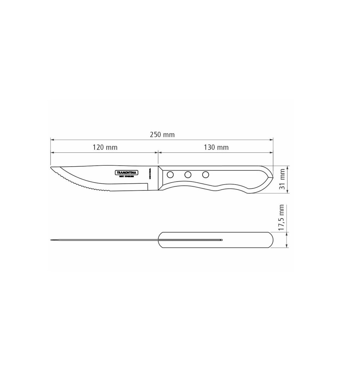 Couteau à Steak Jumbo Marron 25 cm Inox et Technobois Tramontina