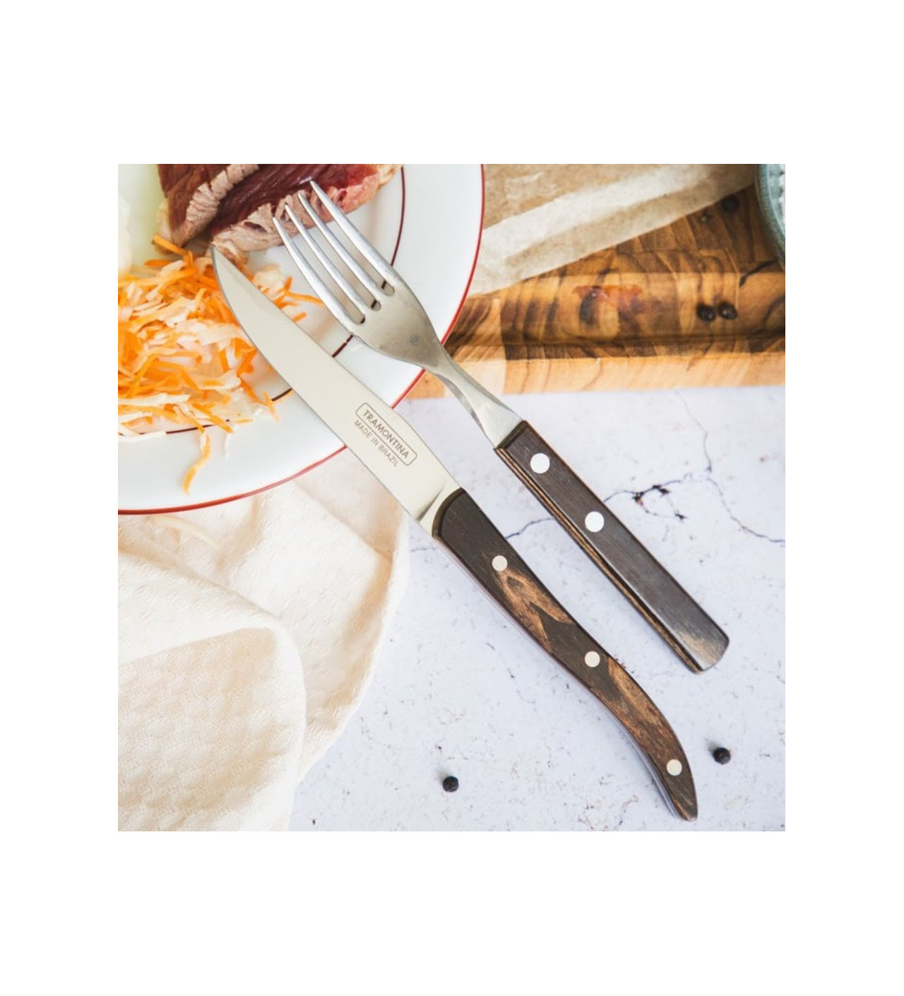 Couteau à Steak Lisse French Marron 22 cm Inox et Technobois Tramontina