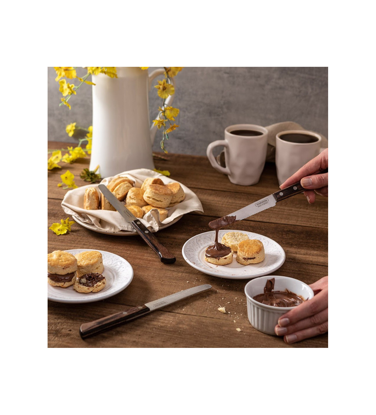 Profitez de matinées gourmandes en recouvrant vos tartines d’une dose généreuse de pâte à tartiner, de beurre, ou de tant d’autres délices. En vous aidant du couteau à tartiner Tramontina, vous pourrez étaler uniformément vos ingrédients préférés sur vos tranches de pain tout juste grillées.