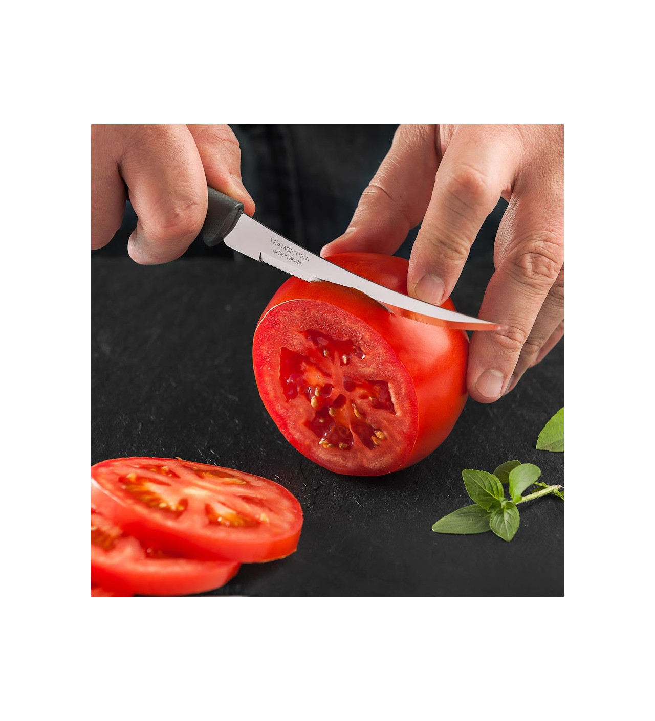 Longtemps considérée comme un légume, la tomate fait pourtant bel et bien partie de la famille des fruits. Qu'importe sa classification, elle est au cœur de nombreuses recettes : tarte à la tomate, tomates farcies, gaspacho… C'est pourquoi cet aliment polyvalent mérite d’être manipulé avec soin et, le couteau Tramontina est l'outil idéal pour cela.