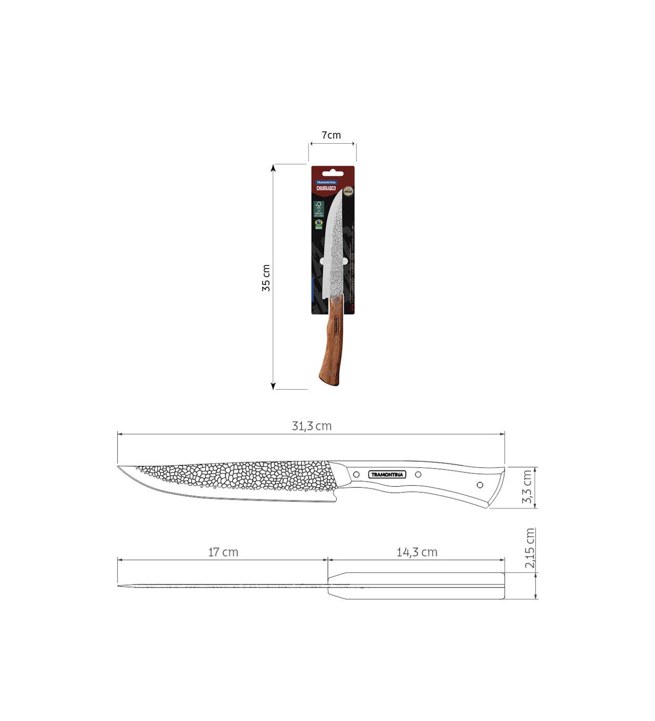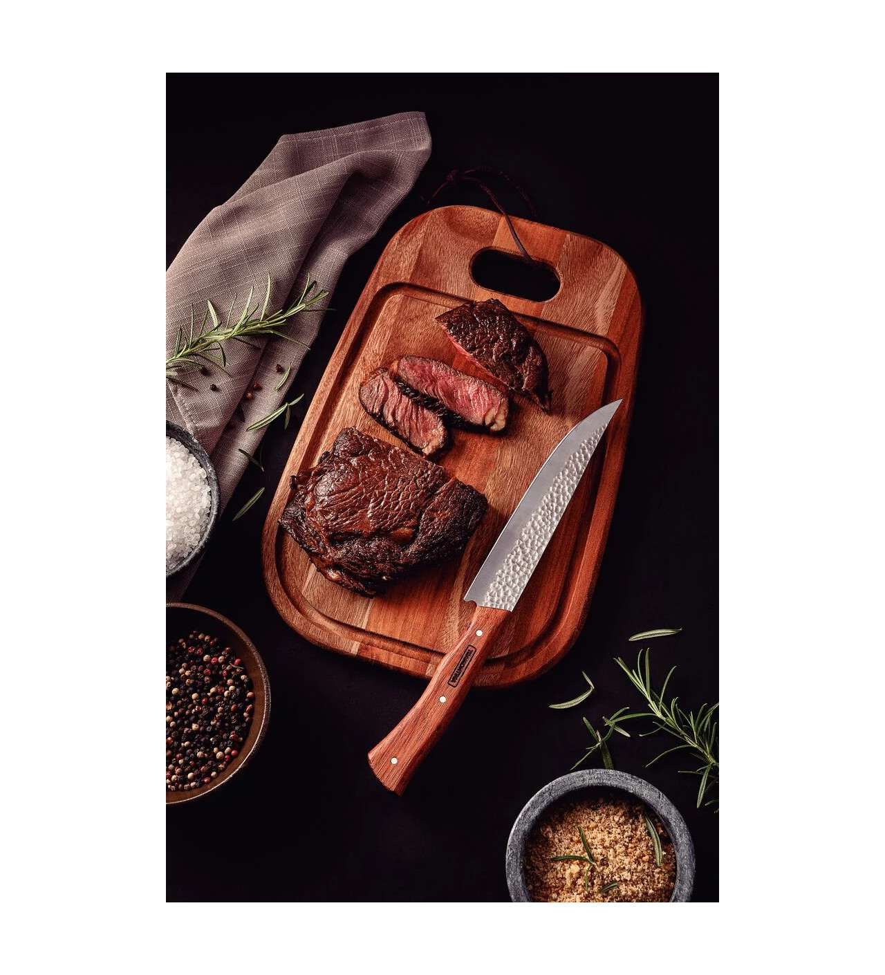 Couteau à Viande 17 cm Inox Martelé et Bois Nomade Tramontina