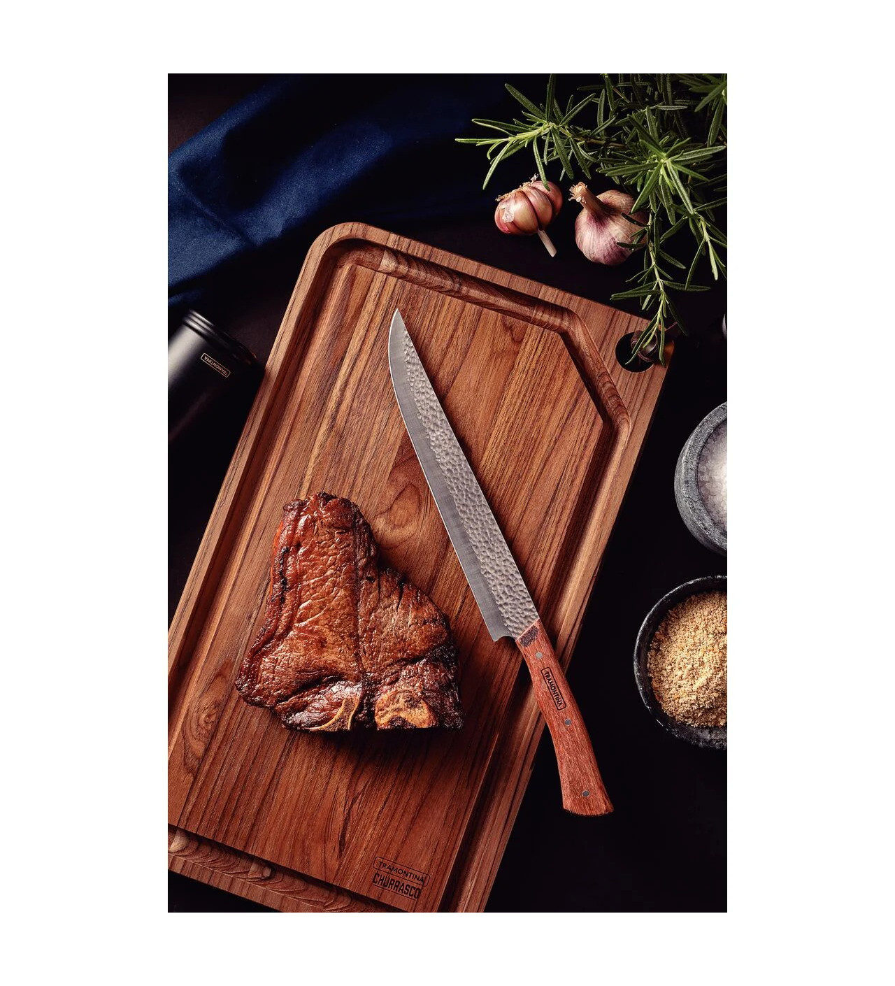 Couteau à Viande 25 cm Inox Martelé et Bois Nomade Tramontina