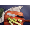 Ce couteau haut de gamme excelle dans l'art de trancher, hacher et émincer grâce à sa large lame, alvéolée et légèrement courbée. Que vous soyez en train de couper des légumes croquants, de trancher une viande ou de préparer un poisson délicat, chaque geste est fluide, rapide et incroyablement précis.