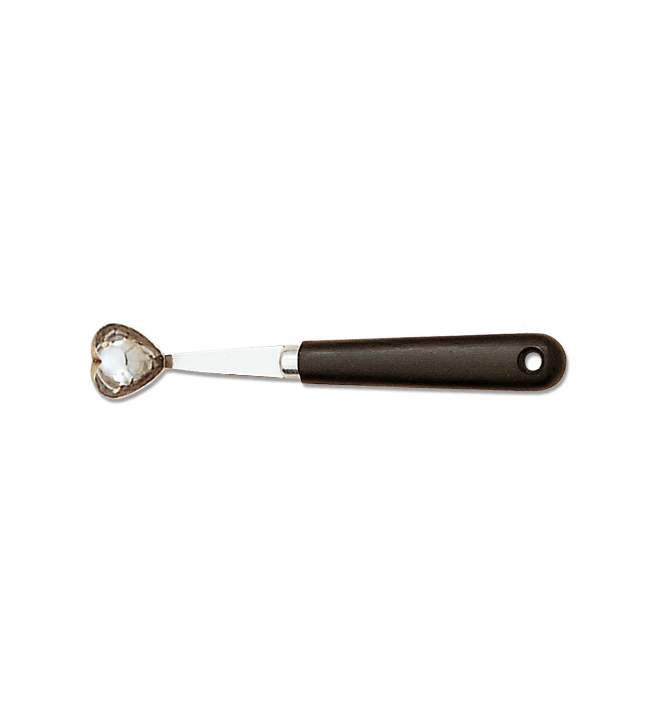 La forme coeur de cette cuillère parisienne permet de réaliser des coeurs en creusant dans des fruits ou légumes : pomme, melon, avocat, navet...