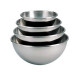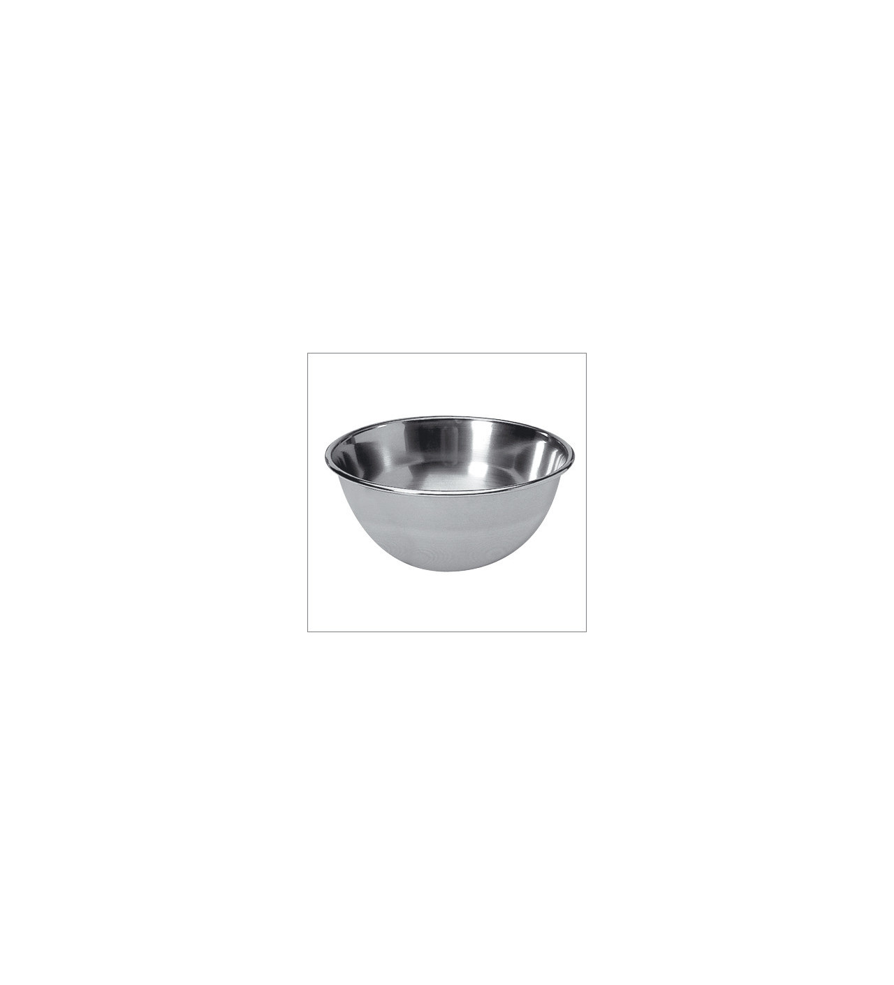 Cul de poule, ou bassine demi-ronde, en acier inoxydable et fond arrondi avec une petite base plate afin de maintenir le cul de poule à droit sur une surface plane.
