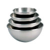 Cul de poule , ou bassine à pâtisserie demi-ronde, en acier inoxydable et fond arrondi avec une petite base plate afin de maintenir le cul de poule à droit sur une surface plane.