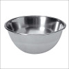 Cul de poule, ou bassine à pâtisserie demi-ronde, en acier inoxydable et fond arrondi avec une petite base plate afin de maintenir le cul de poule à droit sur une surface plane.