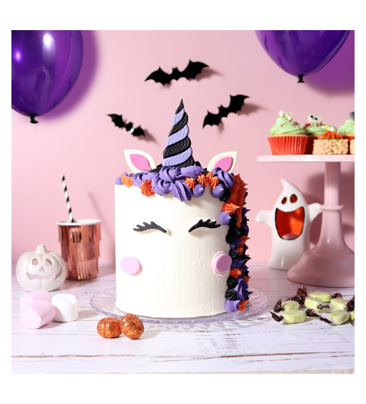 L’ensemble comprend 7 décorations en sucre à disposer sur votre gâteau licorne pour créer un dessert spectaculaire, idéal pour une fête d’Halloween, un anniversaire à thème ou une table de gourmandises enchantée.