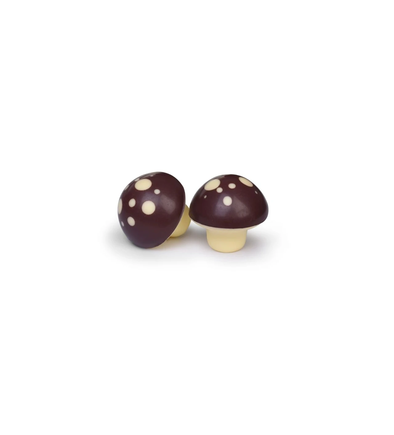 Réalisés en chocolat blanc de qualité, ces décorations comestibles prennent la forme de petits champignons aux couleurs marron et blanc, pour un rendu à la fois réaliste et élégant.