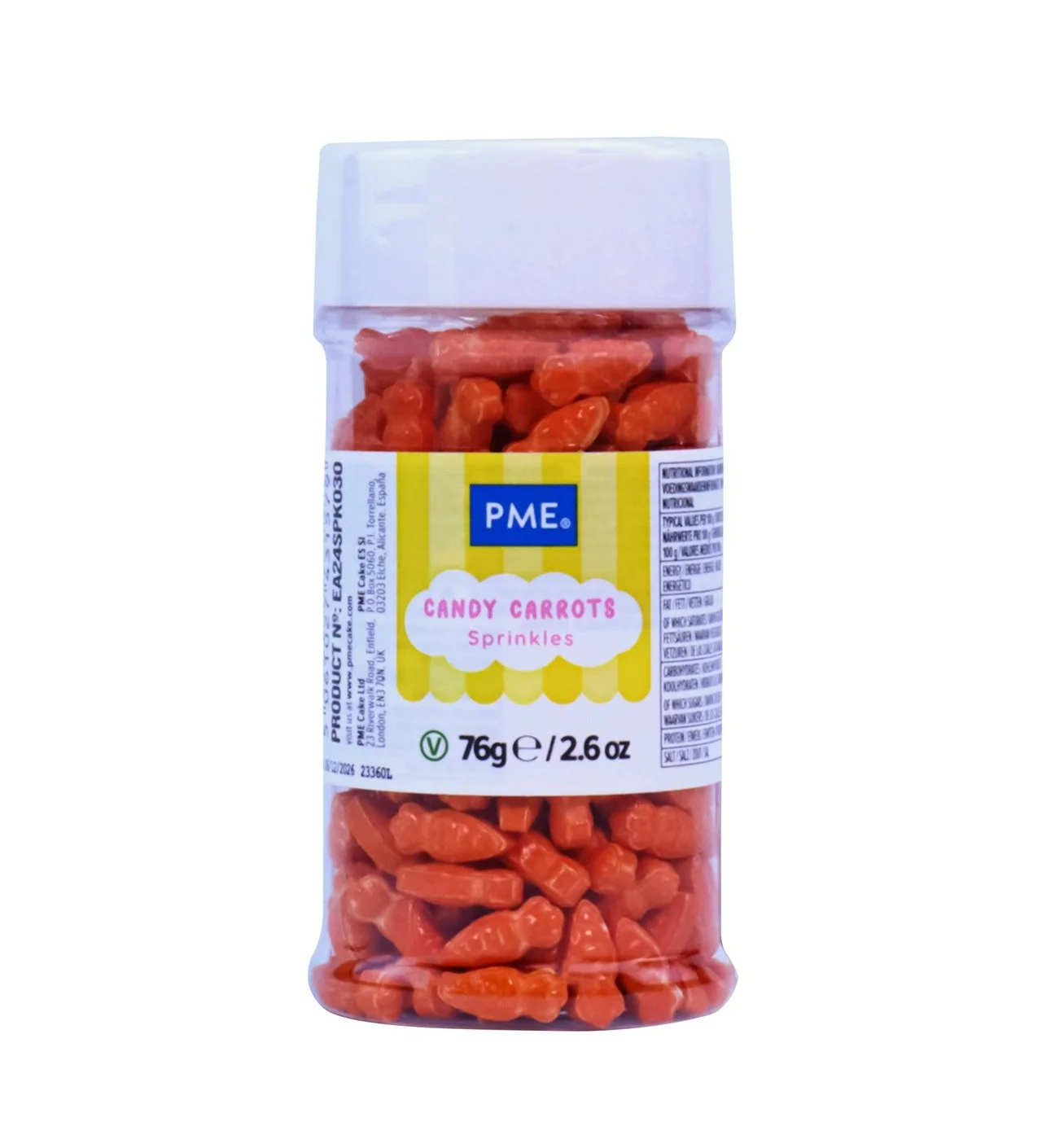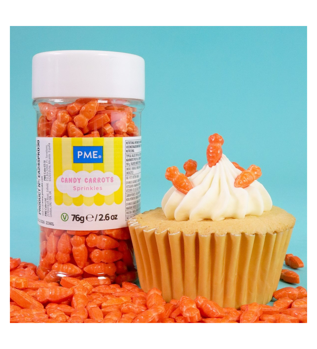 Apportez une touche fun et gourmande à vos créations avec les Décors en Sucre Carotte 76 g PME.