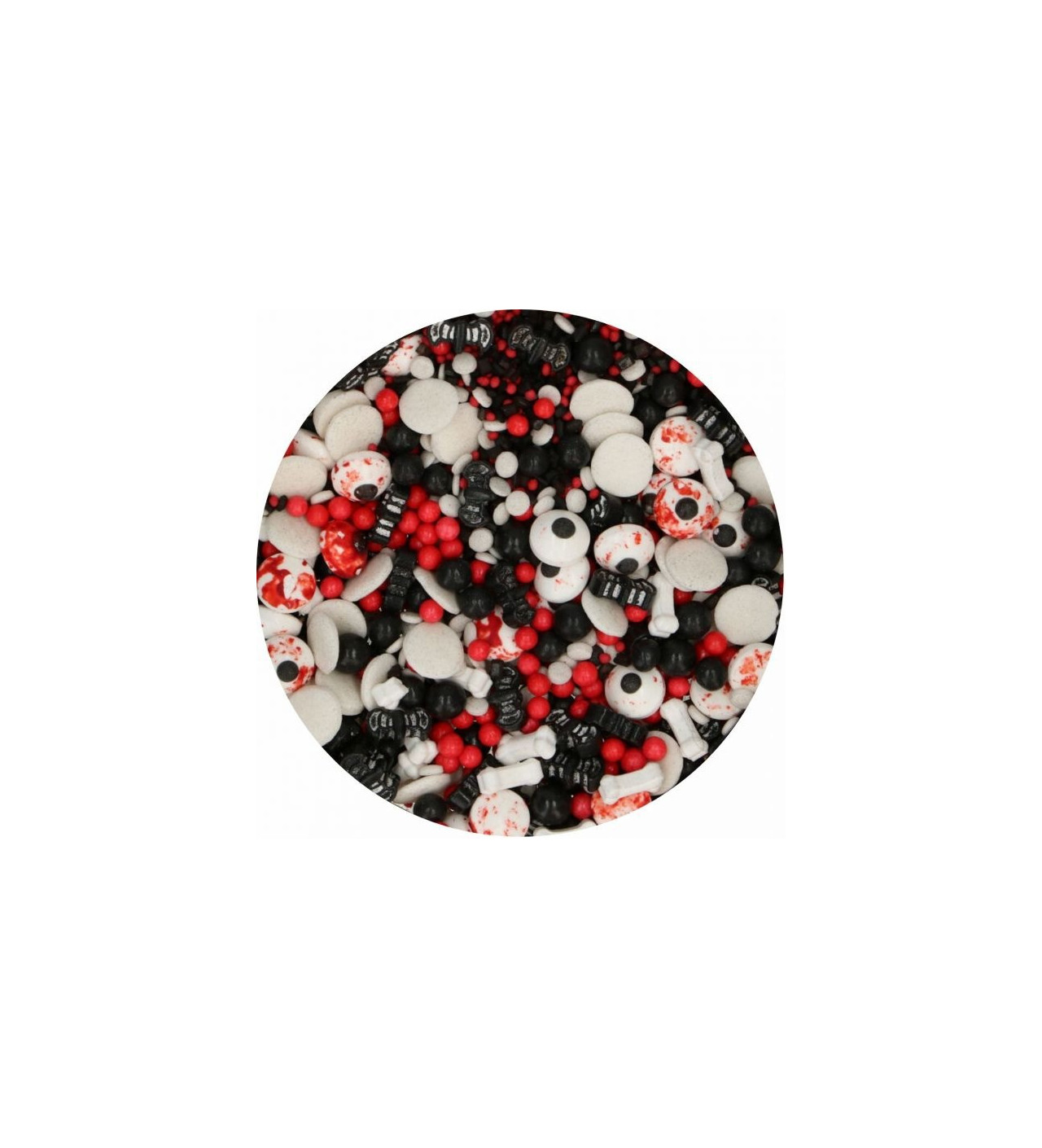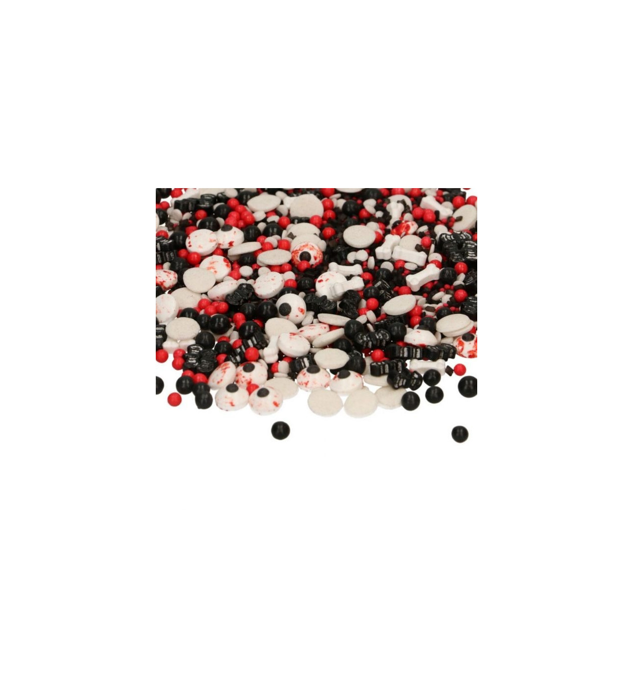 Vous trouverez dans un pot de 70 g divers décors comestibles allant de perles en sucre rouges, à de petites chauves-souris, en passant par de faux yeux. À vous de les disposer sur vos cupcakes et gâteaux pour créer de petits monstres à croquer.