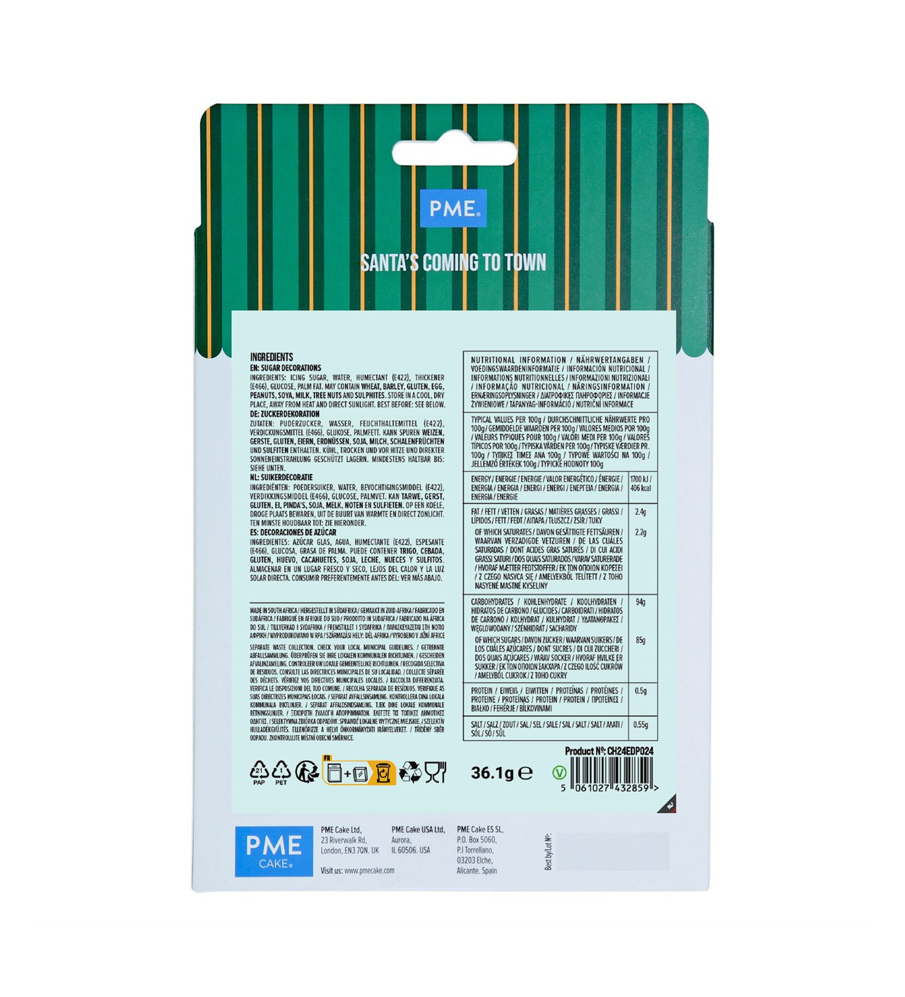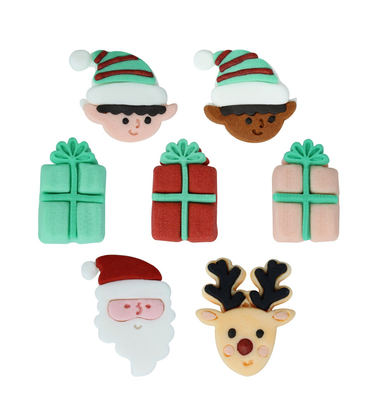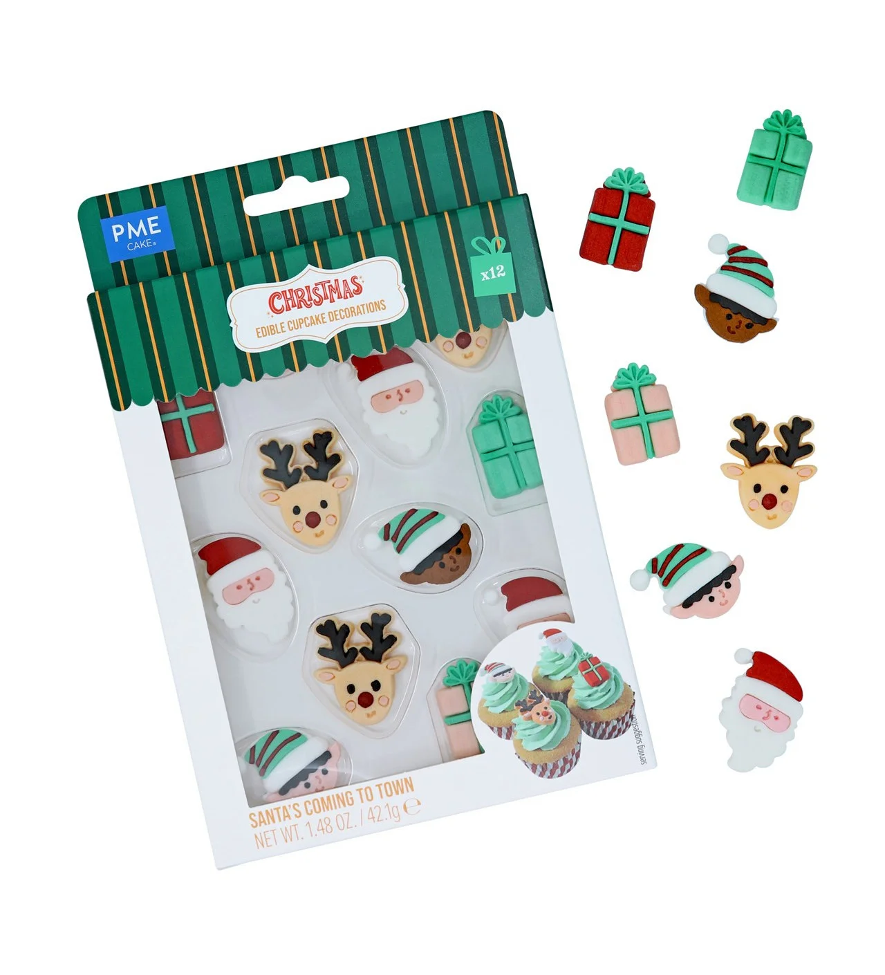 Avec les décors le Père Noël arrive en ville PME, il vous sera facile de rendre vos pâtisseries alléchantes tout en respectant le thème des fêtes. Ce lot de douze décors comestibles comprend une adorable variété de motifs et de couleurs. Vous y trouverez des rennes, des pères Noël, des cadeaux, et des elfes. Tous ces petits décors de Noël PME transformeront vos biscuits et autres gâteaux en gourmandises pleine de magie.
