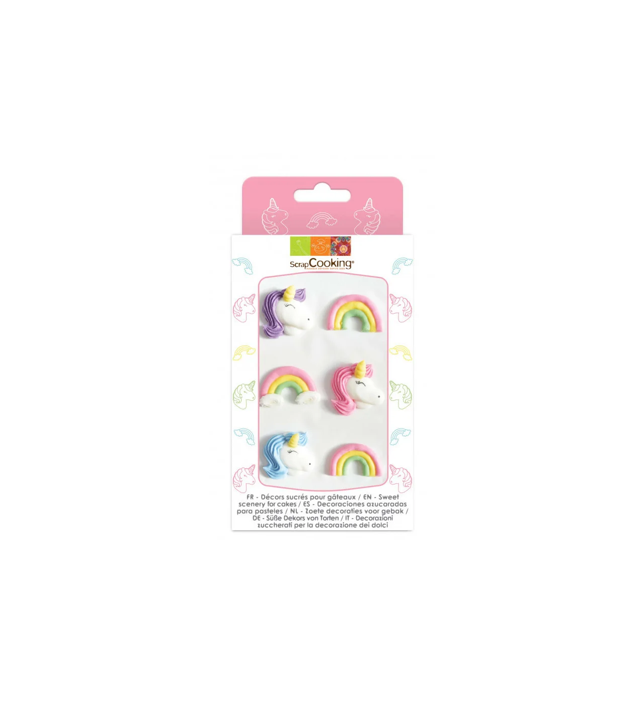 Décors en Sucre Licorne et Arc en Ciel x6 Scrapcooking