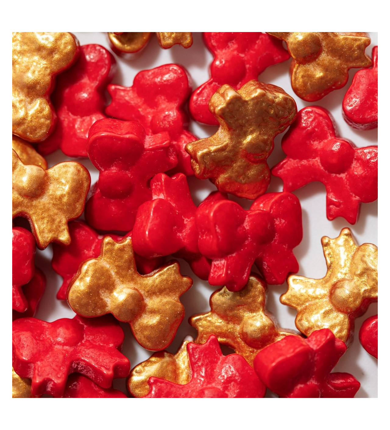 Avec leur forme de petits nœuds et leur mélange de couleurs or et rouge, ces décors en sucre évoquent parfaitement l’esprit de Noël et des cadeaux soigneusement emballés. Parsemés sur vos gâteaux, cupcakes, biscuits ou bûches, ces nœuds en sucre ajoutent instantanément une note chaleureuse et festive à vos desserts de Noël.