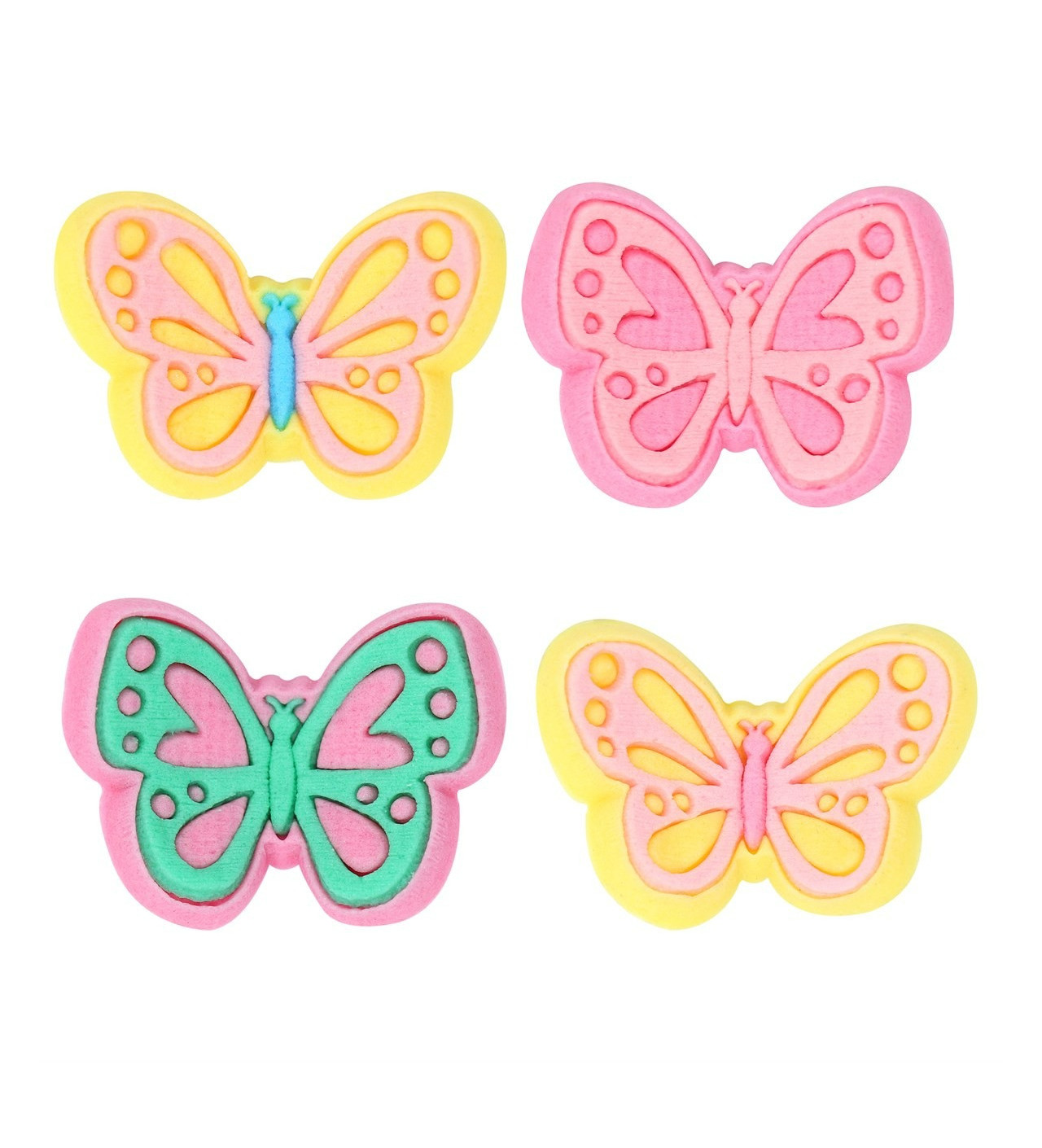 Ce set contient 12 décors en sucre, déclinés en 4 modèles différents, pour créer du mouvement et de la variété pour votre décoration gâteau. Les couleurs douces et lumineuses de rose, jaune et vert, évoquent les jardins en fleurs et donnent instantanément vie à vos desserts. Avec leurs dimensions de 3,2 x 2 cm, ces décorations papillons se posent facilement sur crèmes, glaçages ou ganaches pour un effet visuel élégant et raffiné.