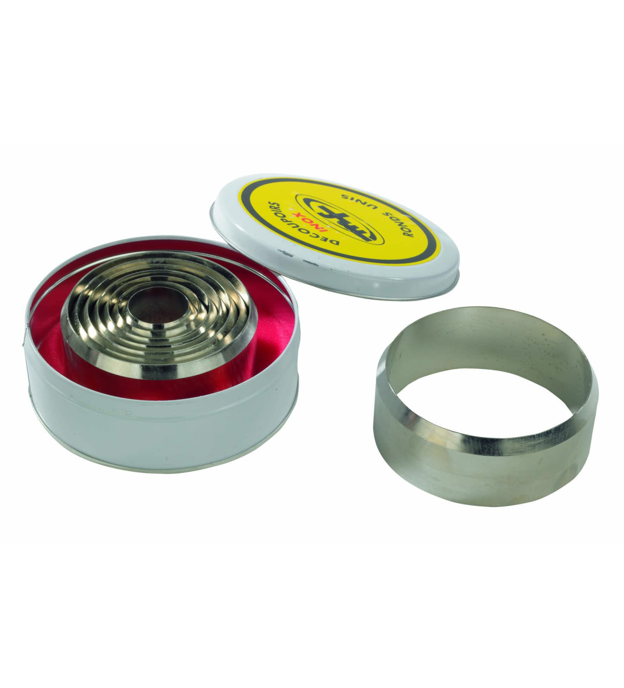 Le découpoir à nougat est disponible en plusieurs diamètres allant de 3 à 10 cm. Proposé à l'unité, il se montre également très pratique pour découper de la nougatine, de la pâte de fruits ou encore de la génoise.