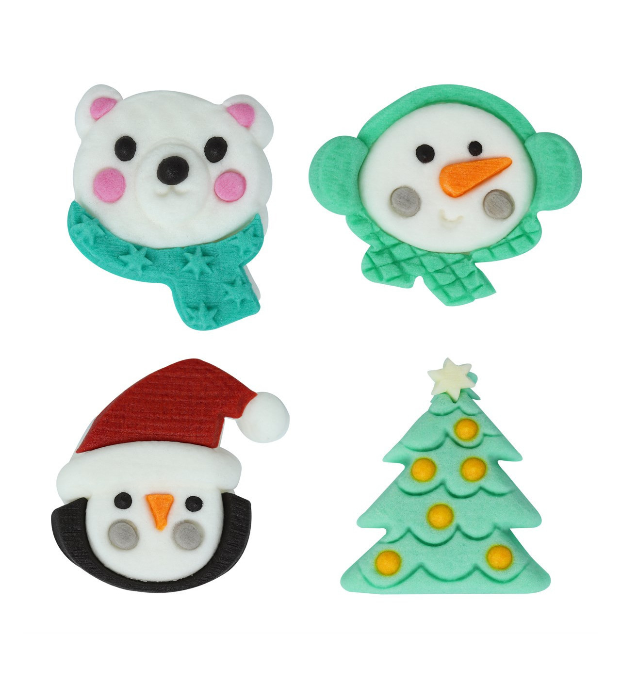 Parez vos desserts de Noël d’adorables décors en sucre et ajoutez ainsi la magie des fêtes à vos créations. Le lot de décors express du pôle Nord vous transporte directement dans la région du monde où fantaisie et fabrication de jouets prennent place.
