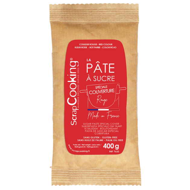 DLUO Courte Pâte à Sucre Rouge Spéciale Couverture 400g Scrapcooking