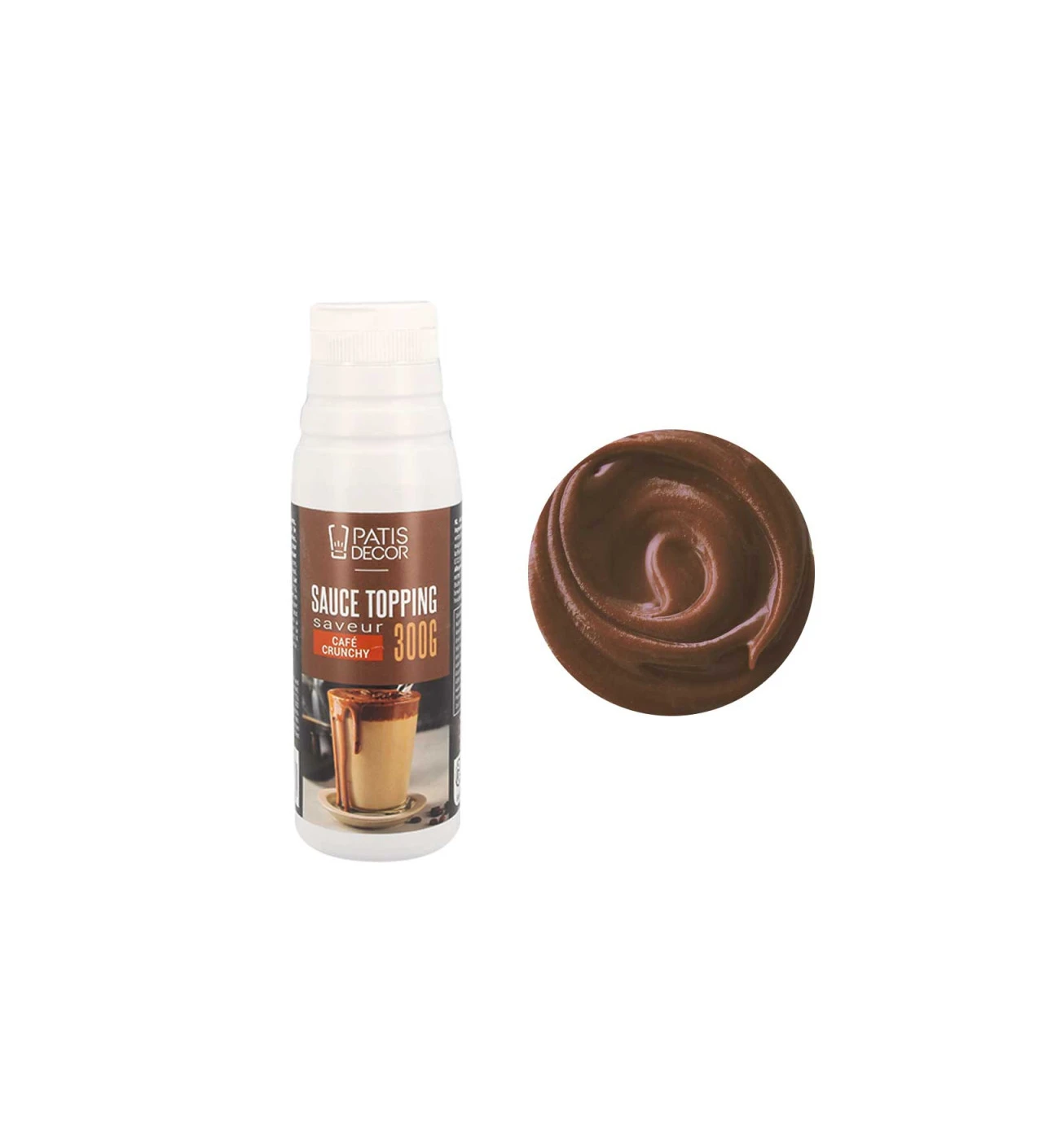 Succombez à l’intensité irrésistible de la Sauce Topping Saveur Café Crunchy 300 g Patisdécor, un nappage qui combine à merveille la saveur café torréfiée et un délicieux croustillant inattendu.