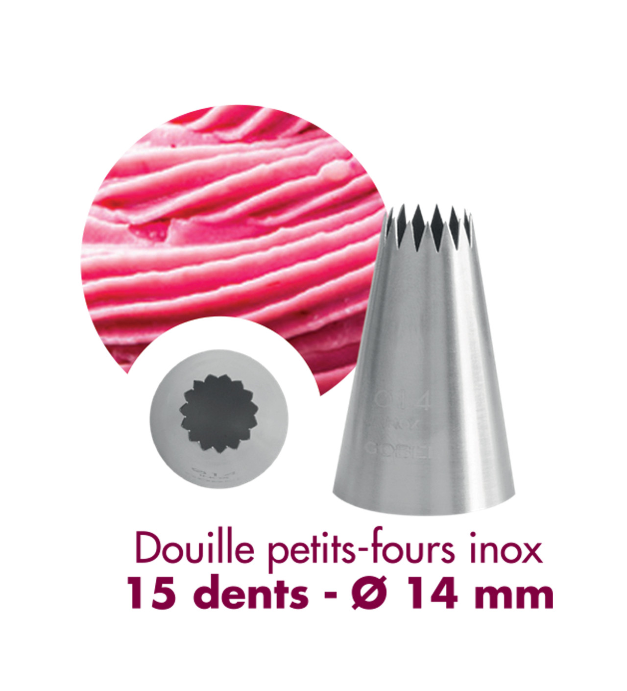 Facile à utiliser et résistant à un usage intensif, la douille pour petit four Gobel est l’ustensile parfait pour une multitude de pochages. Profitez dès à présent de cette qualité professionnelle pour votre cuisine et donnez à vos recettes une nouvelle dimension.