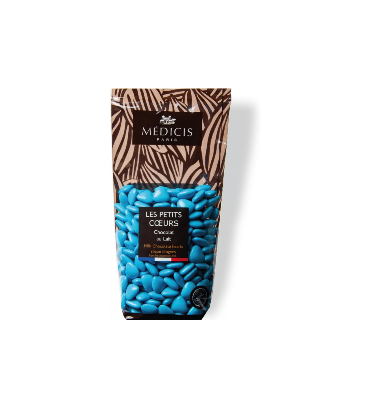 Dragées Chocolat au Lait Petit Coeur Bleu Turquoise 250g Médicis