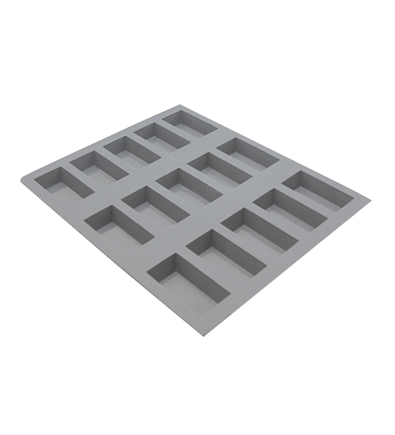 Moule à Financier en Elastomoule : Mousse de silicone alimentaire. La matière transmet parfaitement la chaleur, donne un bel aspect doré aux mini-financiers et leur confère un goût inimitable grâce à la caramélisation des sucs lors de la cuisson. Les angles sont vifs et donnent au produit une belle présentation.