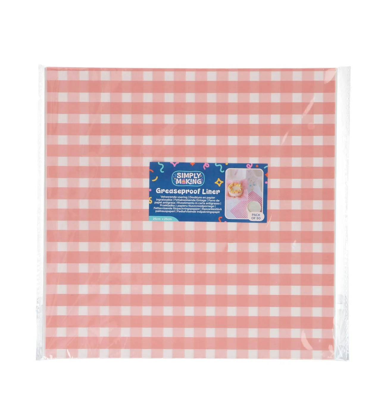 Emballage Bento Cake Papier Vichy Rose 25 cm (x50) Simply Making
