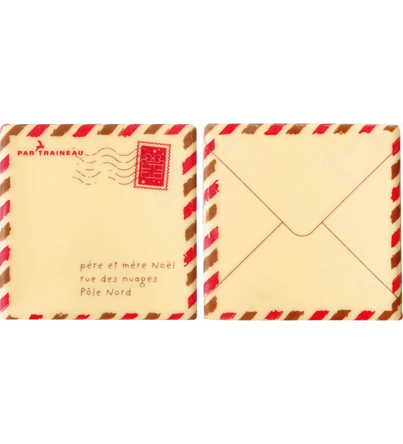 Pour vous faire voyager pendant cette période de fête, chacun des embouts de bûches possèdent un design de lettre au père Noël. Placez les décorations en chocolat à chaque extrémité de votre dessert pour compléter la décoration de vos bûches. Leurs dimensions de 8 x 8 cm sont idéales et s’adapteront à la majorité de vos desserts. Fabriqués en France et composés à 98% de chocolat blanc, ses décorations comestibles sauront sublimer vos desserts de Noël.