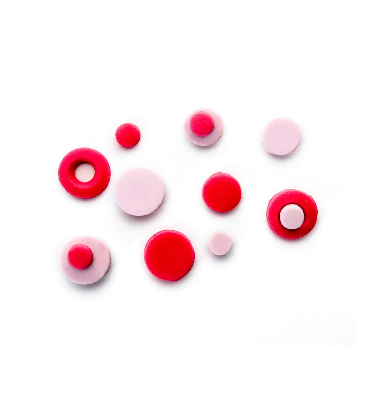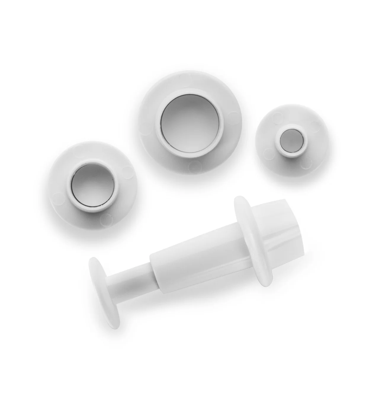 Le kit d'emporte-pièces se compose de 3 modèles déclinés en 6, 10 et 13 mm de diamètre. Entièrement faits de plastique, cela le rend plus facile à entretenir. Pour obtenir un cercle parfaitement découpé en une pression, étalez la pâte à sucre finement. Pour une épaisseur homogène, utilisez le rouleau à pâtisserie ajustable. Déposez l'emporte-pièce, pressez sur le poussoir : il ne vous reste plus qu'à décorer votre gâteau !