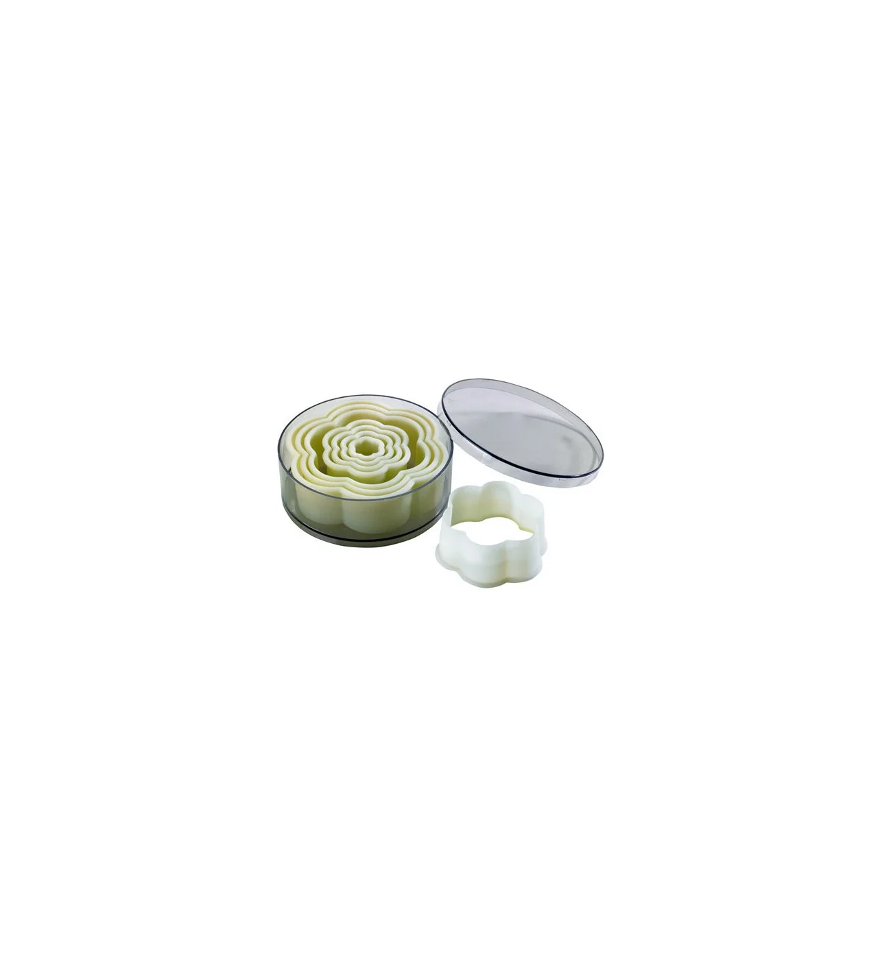 Les emporte pièce fleur uni sont déclinés sous 8 formats différents, rangés dans une boite transparente. Faits à partir de polyglass, ce matériau résiste à la chaleur jusqu'à 160°C. Si ces emporte pièce sont les chouchous des pâtissiers professionnels, c'est parce qu'ils sont faits d'un seul bloc. Cela les rend bien plus facile à entretenir, les rendant conformes aux normes d'hygiène alimentaire.