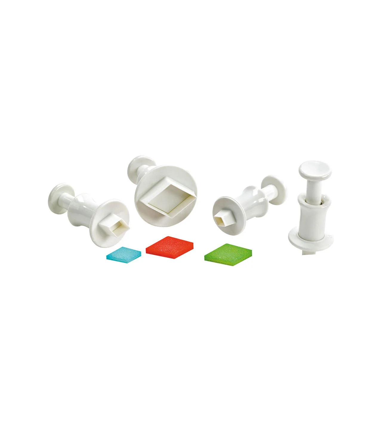 Grâce à l'emporte pièce losange, vous pourrez décorer vos gâteaux de multiples façons, de la plus simple à la plus élaborée ! En quelques secondes, vous obtiendrez un grand nombre de losanges, il vous suffira alors de les déposer comme bon vous semble sur le gâteau. L'emporte pièce dispose d'un poussoir : en un seul geste, la pâte à sucre est marquée et éjectée.