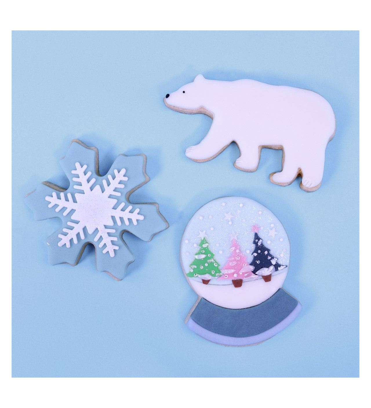 Ce lot magique comprend 3 emporte-pièces différents, un flocon de neige, un ours polaire et une boule à neige, parfaits pour créer des biscuits de Noël qui évoquent toute la féérie de la période.