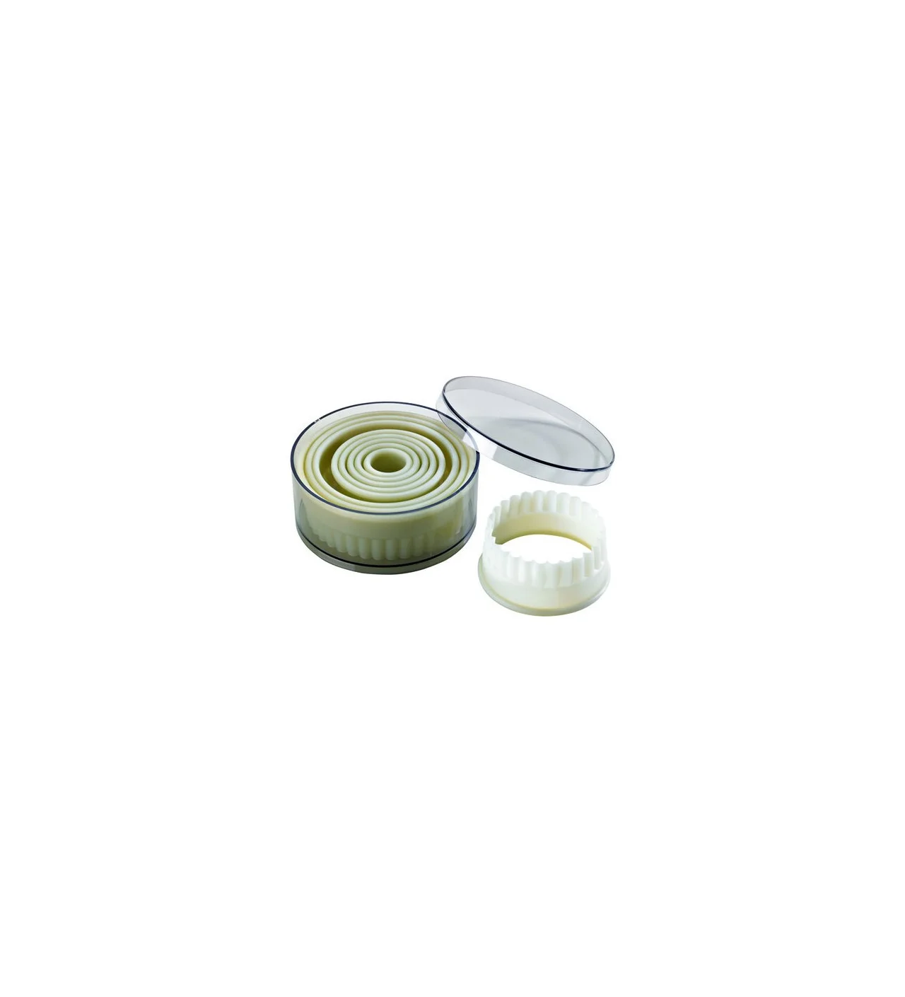 Les emporte pièce ronds cannelés sont faits de polyglass, un matériau très résistant qui suppporte la chaleur jusqu'à 180°C. Côté hygiène, ils se montrent irréprochables puisqu'ils sont faits d'un seul bloc. C'est la raison pour laquelle professionnels et particuliers choisissent ces emporte pièce.