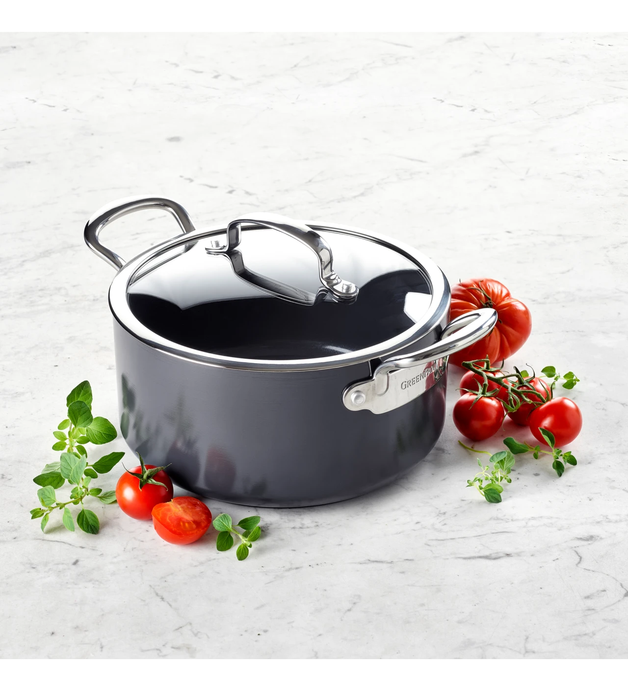 Solide, élégant, facile à transporter, le faitout induction en céramique BARCELONA GreenPan passera directement de la cuisine à la table, pour un service convivial !