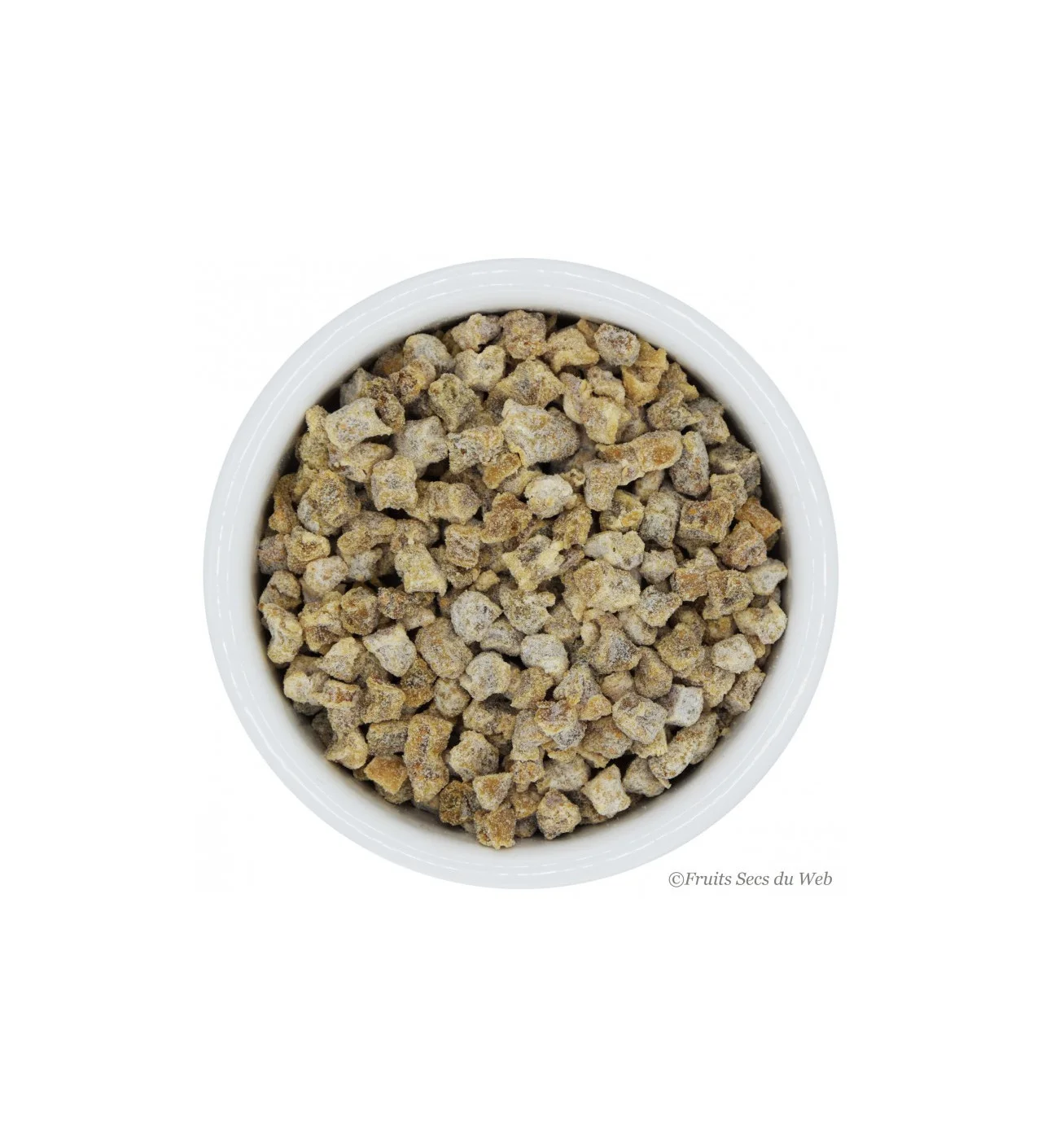 Notez que ces cubes de figues Bio sont enrobés d’une fine pellicule de farine de riz, afin d’éviter leur agglomération ; cette farine sans gluten est également biologique.