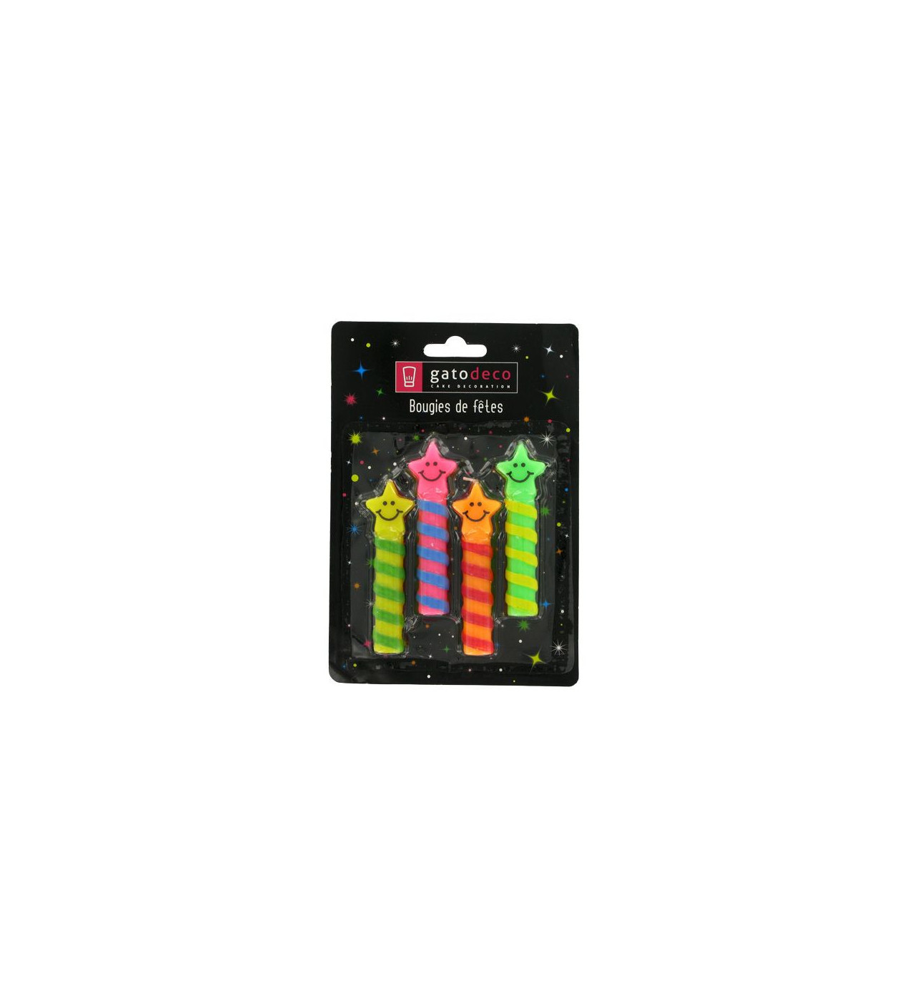 FIN DE SERIE Bougies Smileys Etoiles (x4) Gatodéco