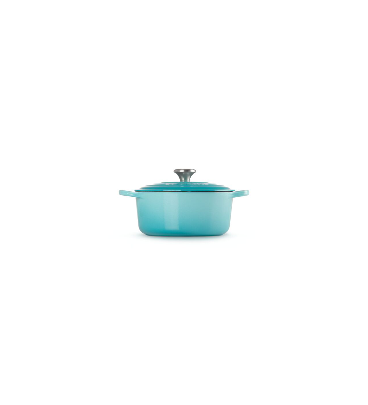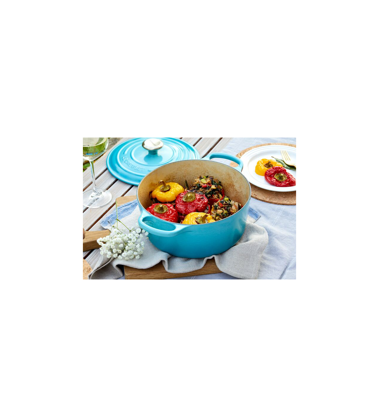 Moderne, la cocotte en fonte Le Creuset possède une belle couleur bleue rappelant l'eau de la mer des Caraïbes ! Procurez-vous dès à présent cette belle Cocotte en fonte Ronde 24 cm Caraïbes Le Creuset Signature, garantie à vie !