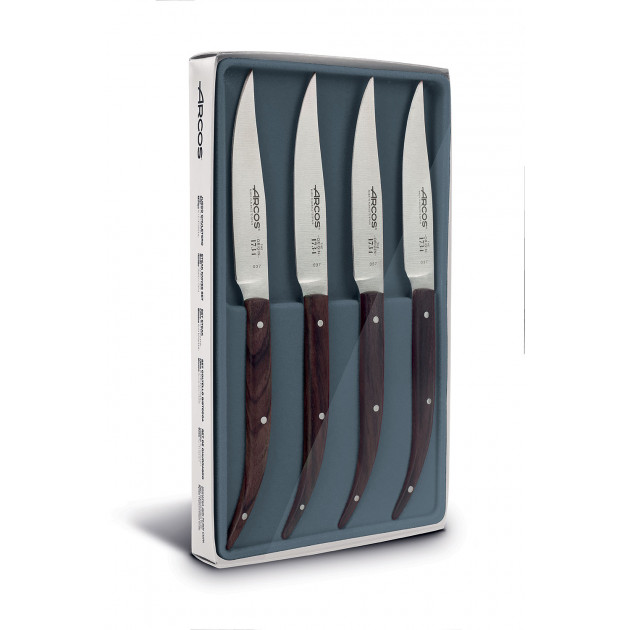 Besoin de couteaux qui peuvent découper une pièce du boucher facilement ? Découvrez le coffret de 4 couteaux à steak proposé par Arcos, vous ne serez pas déçu !