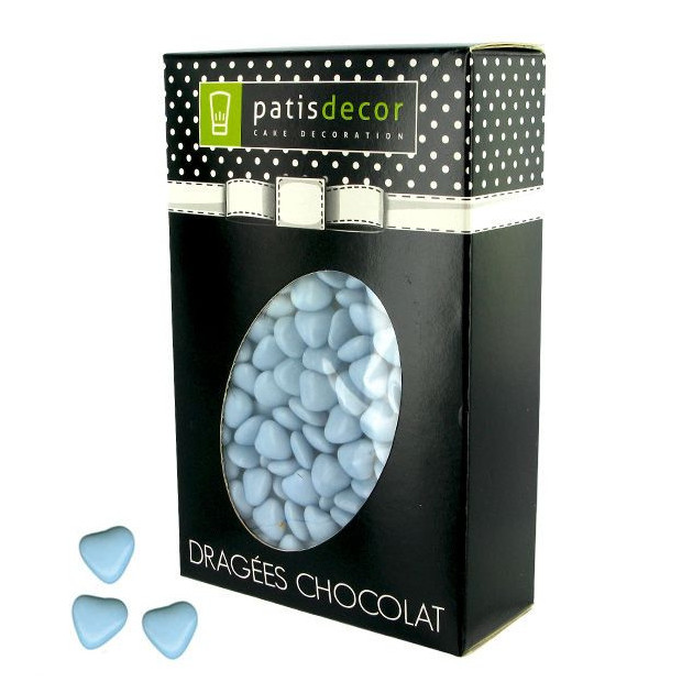 FIN DE SERIE Dragées Chocolat Mini-Coeurs Bleu Ciel 500 g Patisdécor