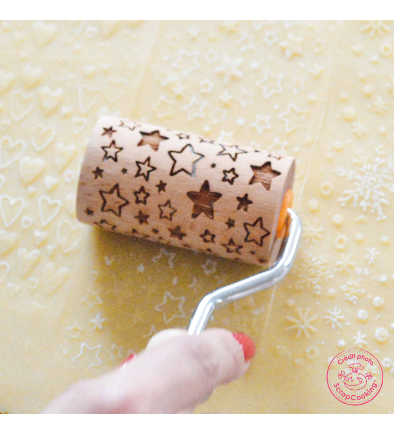 Changez facilement les motifs du rouleau à pâtisserie décoratif en fonction des envies : les flocons de neige pour Noël, les cœurs pour la Saint-Valentin et les étoiles pour un anniversaire !
