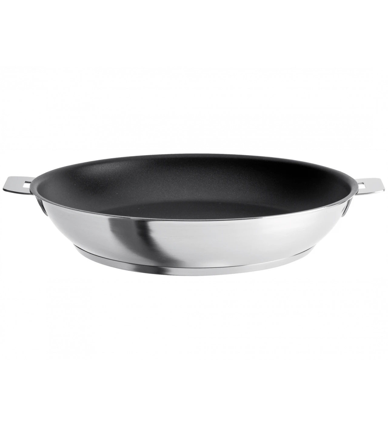 Avec des crochets pour placer des anses ou une poignée amovible, la poêle sauteuse en inox fait preuve d'une excellente maniabilité. Son revêtement intérieur permet un service de qualité puisqu'il n'attache pas, mais aussi une cuisine plus saine car il est sans pfoa.