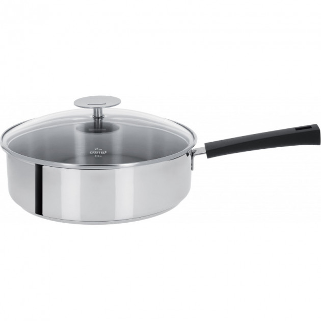 Cette sauteuse est vendue avec son couvercle en verre bombé cerclé d'inox qui s'adaptera à tous vos ustensiles de diamètre 24 cm Cristel.