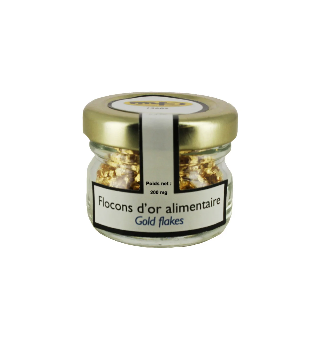 Donnez de l'éclat et de l'élégance à vos créations et à vos desserts en appliquant quelques flocons d'or sur le dessus.