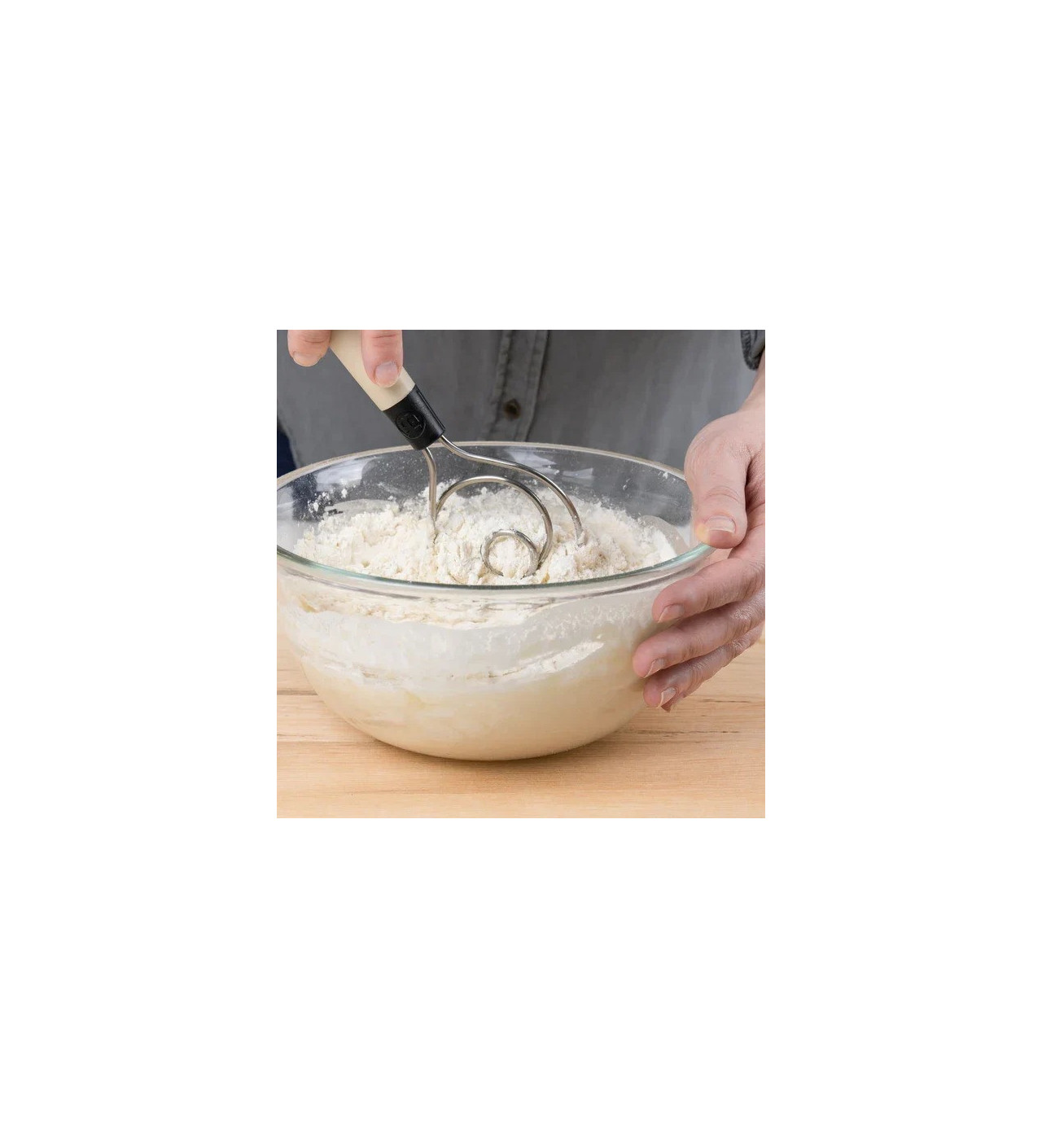 Il peut être parfois difficile de mélanger un levain ou une pâte à pain maison. C'est pourquoi Brod and Taylor vous propose son fouet à pâte danois. La forme unique de ce fouet de cuisine permet d'obtenir un mélange homogène pour son levain ou tout autre pâte rigide.