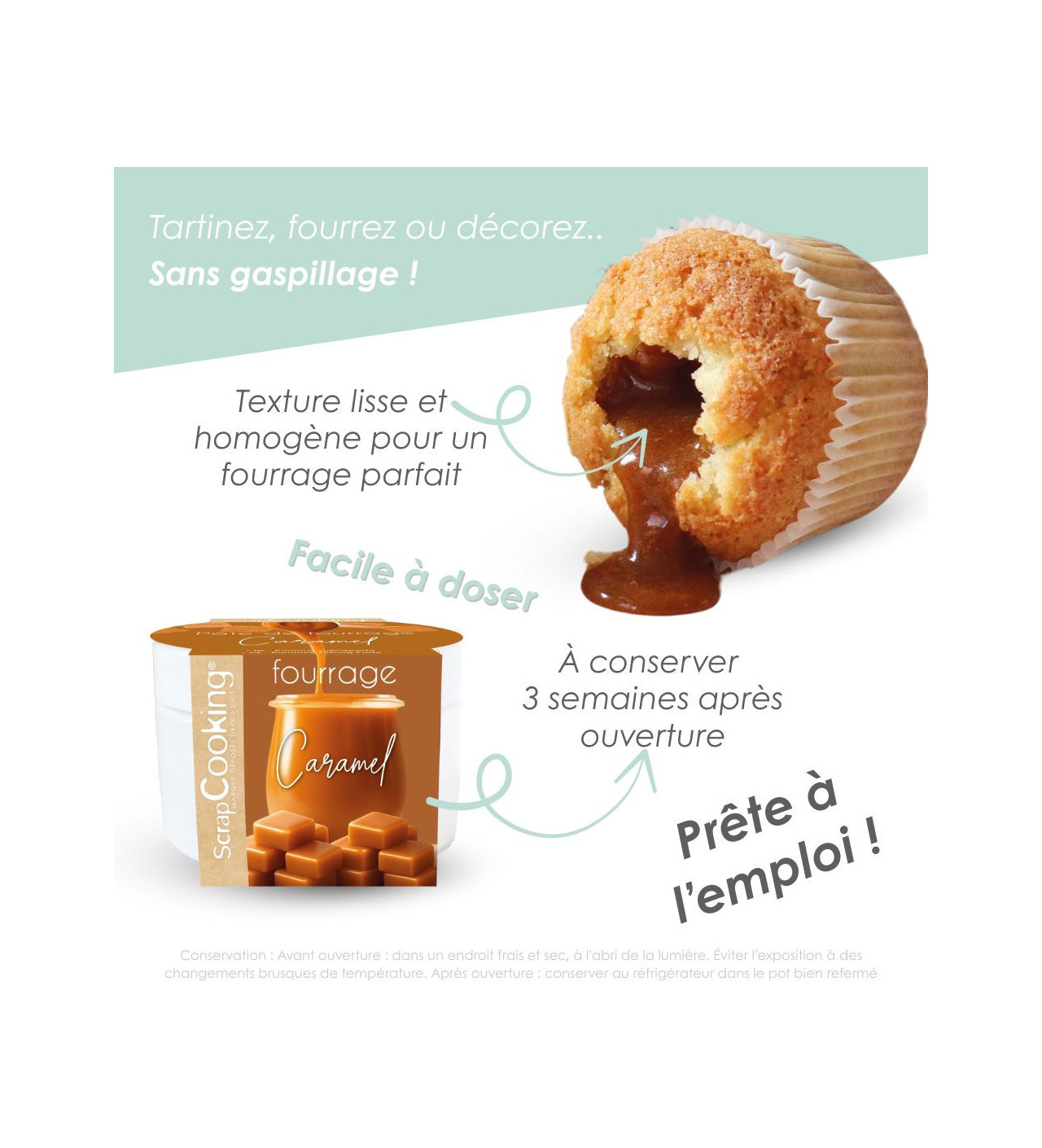 Une touche de caramel suffit à améliorer une multitude de desserts. Muffins, gâteaux, entremets, chocolats, et tant d’autres préparations prennent une tournure bien plus gourmande en y ajoutant un cœur de caramel crémeux. C’est pourquoi Scrapcooking vous propose son fourrage caramel.