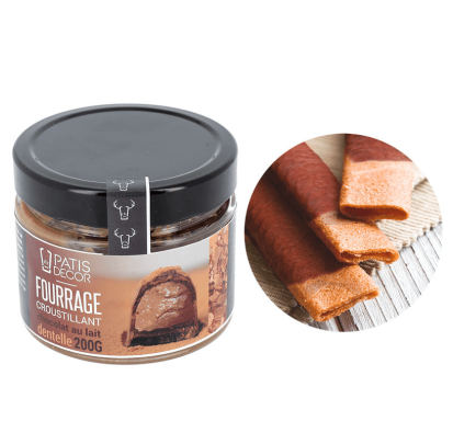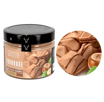 Par sa saveur originale axée sur le lait et la noisette, ce fourrage peut être utilisé pour réaliser divers desserts mais peut aussi se savourer tel quel. Les morceaux de gaufrette apporteront à ce fourrage croquant de chez Patisdécor une texture unique, qui vous séduira à tous les coups.